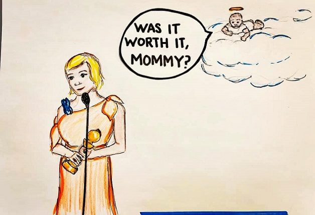 Actrița spusese că premiul primit se datorează faptului că a făcut un avort pentru a se concentra mai bine pe cariera sa artistică. Laura Klassen a postat o fotografie cu actrița pe scena ceremoniei, lângă care a adăugat umbra unui copilaș, prezent însă doar ca amintire. Montajul foto (sus) este însoțit de întrebarea: „A meritat?”.
