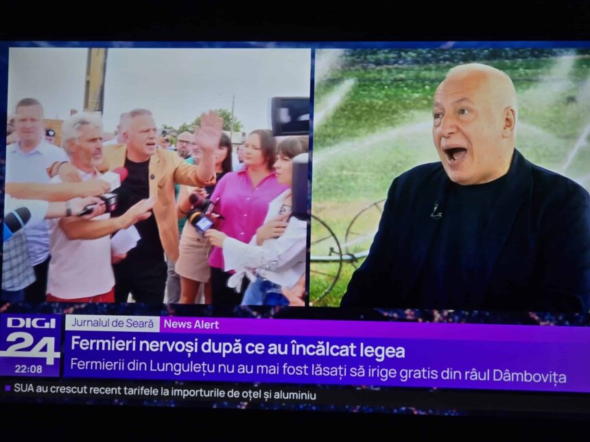 Televiziunile sistemului au primit semnalul: ținta e țăranul român. Digi24 a sărit prima la atac și titrează fără rușine că „fermierii au încălcat legea” pentru că au îndrăznit să irige culturile cu apă din Dâmbovița. De parcă ar fi furat dintr-un rezervor privat al vreunui ministru, nu dintr-un râu care curge prin pământul românesc de secole.