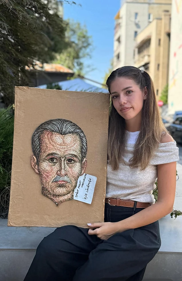 În imagine, Andreea Daria Guran, strănepoata Sfântului Părinte Ilie Lăcătușu, purtând în inimă recunoștința și legătura de sânge, i-a realizat chipul în mozaic, ce va fi amplasat în pronaosul Catedralei Mântuirii Neamului, publică ActiveNews.