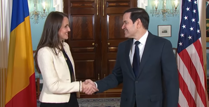 „Ministrul român al afacerilor externe, Oana Țoiu, a avut consultări politico-diplomatice cu Secretarul de Stat al SUA, Marco Rubio, în cadrul vizitei oficiale pe care o efectuează în Statele Unite ale Americii, în perioada 8-9 octombrie 2025.