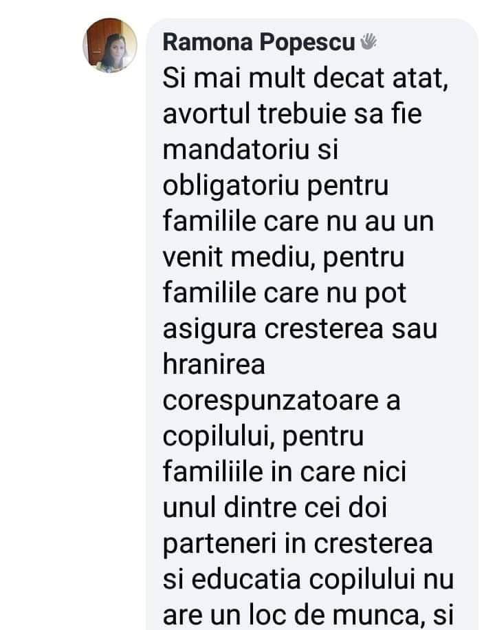 Ramona Popescu, susținătoare USR, pe Facebook: "Si mai mult decat atat, avortul…
